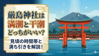 広島が誇る世界遺産、厳島神社。いざ行こうと計画を立て始めると、まず迷うのが「満潮と干潮のどちらに合わせて行くか」という問題ではないでしょうか。実は厳島神社は、潮の満ち引きによってその姿を劇的に変える不思議な場所です。せっかく宮島まで足を運ぶ...